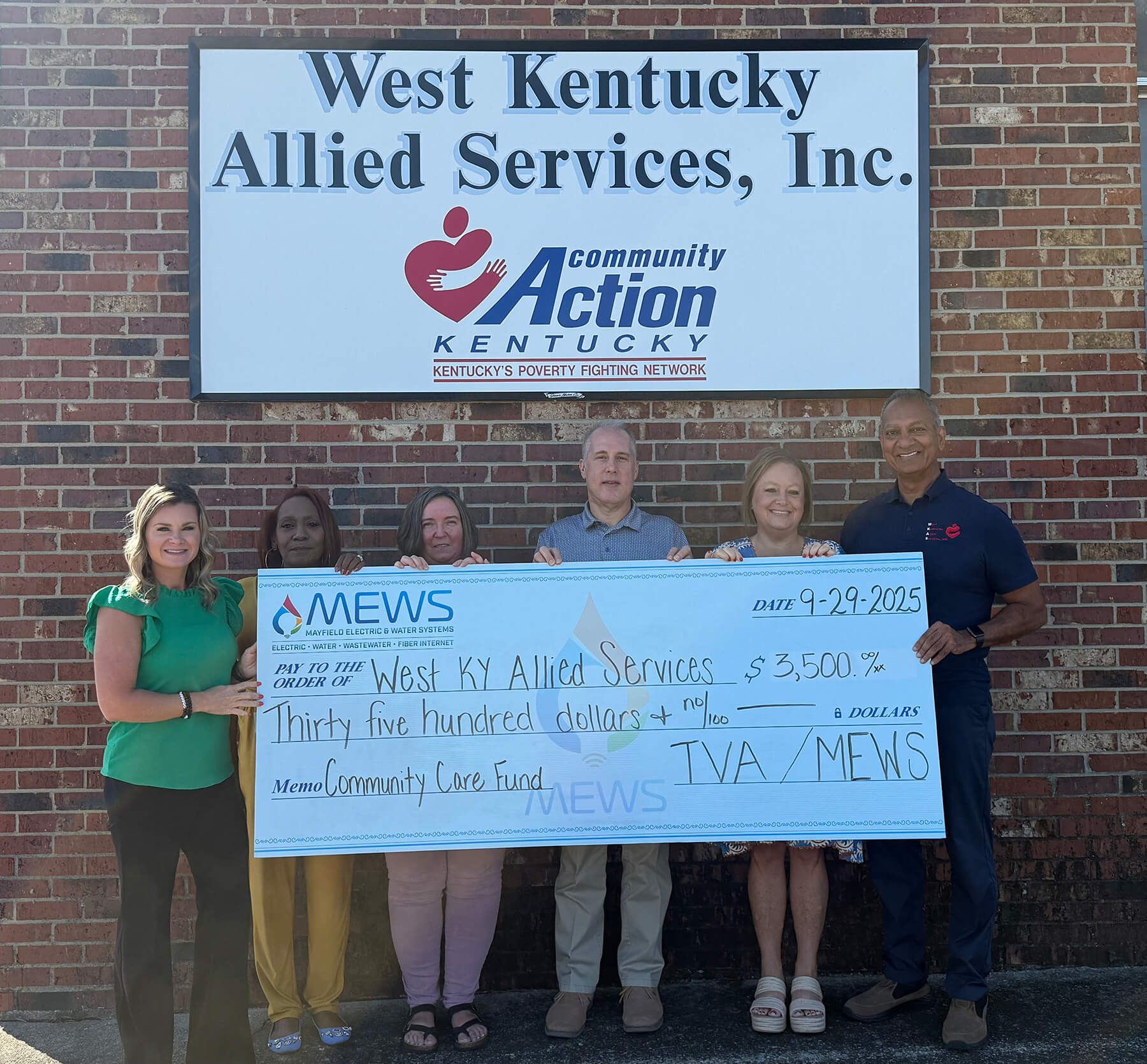 Mayfield Electric & Water Systems is proud to partner with TVA through the Community Care Fund to support local nonprofits here in Mayfield. Thanks to this partnership, we were able to distribute $14,000 to four amazing organizations making a real difference: Annie Gardner Foundation, Mayfield Downtown Farmers Market, West Kentucky Allied Services, and Purchase Players Inc.